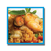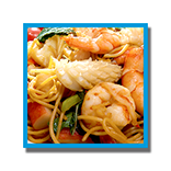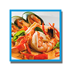 fish, mussels, shrimp squid, imitation crab, fish ball, bell pepper, basil in red curry.
