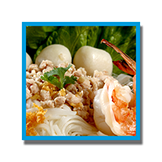 Northern style curried noodle soup with chicken, shrimp, and egg noodle.